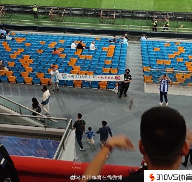 津门虎球迷拉横幅欢迎成都蓉城:欢迎你们来做客,中秋节快乐