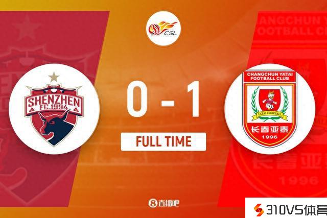 全场竞赛完毕,长春亚泰客场1-0击败深圳队。