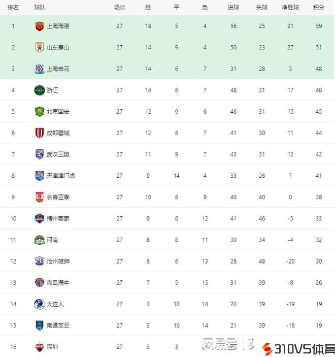 中超最新积分榜:上海申花小胜攀升第3,北京国安赢球位列第5!