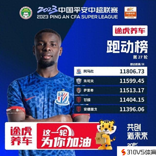 中超第27轮跑动榜:申花外援阿马杜居首,蓉城两球员跻身前五