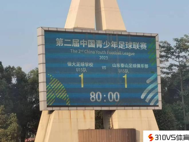 竞赛上半场两队战成0比0,在攻防两端都拿出了比拟高质量的表现,下半场泰山队U15先拔头筹,泰山队开出角球,尚天羽回头望月将球顶入恒大U15大门,泰山队1比0抢先。随后恒大足校U15右侧肋部传中,王伟轩胸部停球倚住对方后卫抽射破门,将比分扳成1比1平,赛后王伟轩被评为本场最佳。最终1比1的比分不时坚持到终场,比分很好的将两队势均力敌的态势表现了出来。