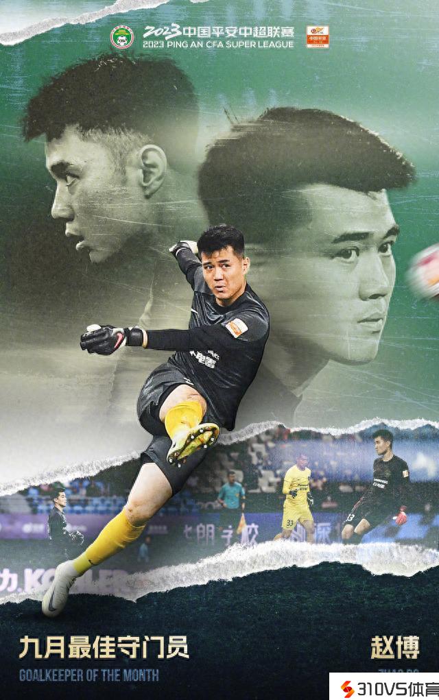 浙江队9月三战0失球,官方:赵博中选中超9月最佳门将