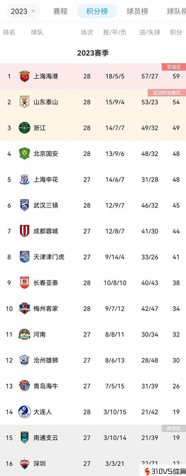 中超积分榜:冠军悬念保管!海港抢先泰山5分,下轮双方直接对决