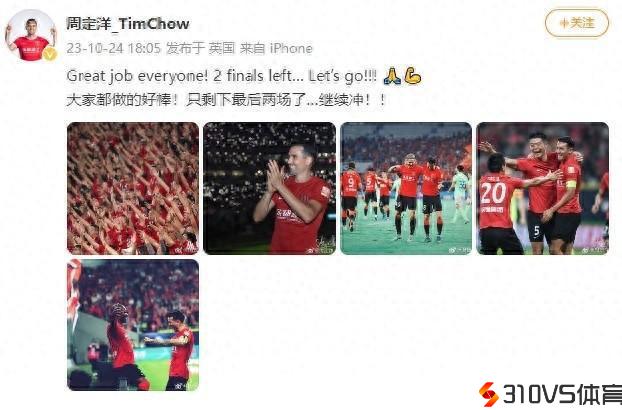 周定洋发文庆贺成功:大家都做的很棒,只剩下最后2场继续冲