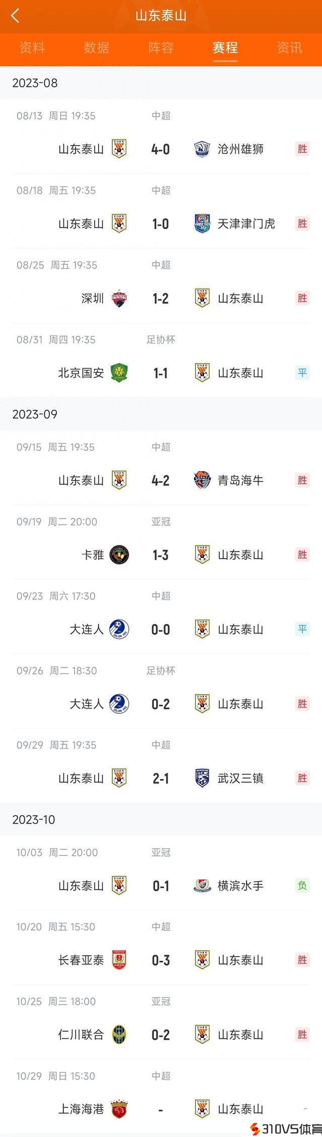三线都不落!泰山中超、亚冠、足协杯近12场,豪取9胜2平1负