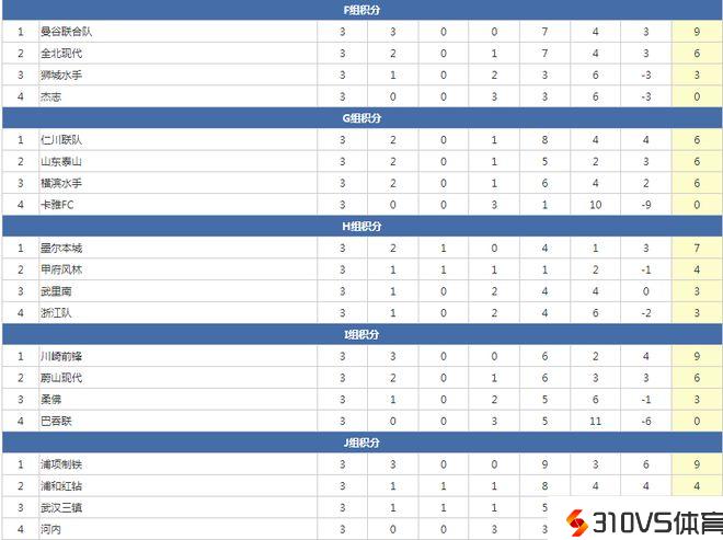 亚冠最新积分榜:中超三队齐胜,山东抗韩升G组第一,浙江首胜