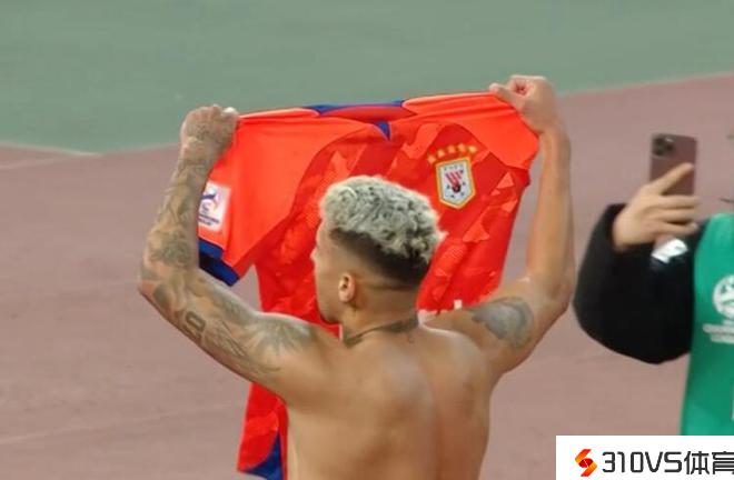进球后的克雷桑开心极了,他选择了脱衣庆贺,并在山东球迷面前举起了球衣,这一幕是不是素昧平生呢?