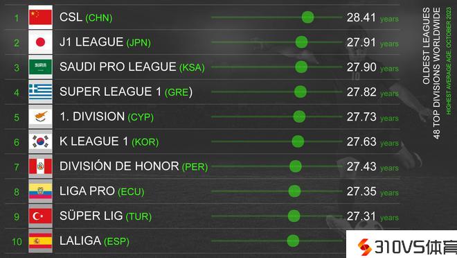 最老联赛全球联赛年龄:中超28.41岁遥遥抢先,日本第2沙特第3