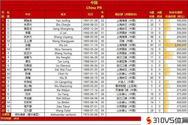 国足战泰国23人名单及号码:戴伟浚13号,徐浩峰落选