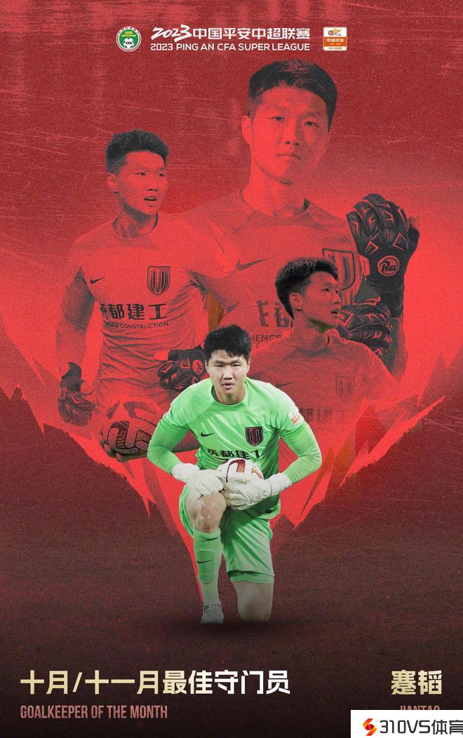 官方:成都蓉城门将蹇韬中选中超10月&11月最佳门将