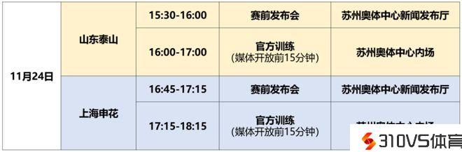 泰山队的赛前发布会将于15:30末尾,官方训练将于16:00-17:00在苏州奥体中心内场停止;上海申花停止赛前发布会的时间为16:45,官方训练时间是17:15-18:15。值得一提的是,竞赛就是在25日16:00开球,泰山队踩场训练的末尾时间与开球时间分歧,这更有利于球队顺应场地、找到竞赛节拍。
