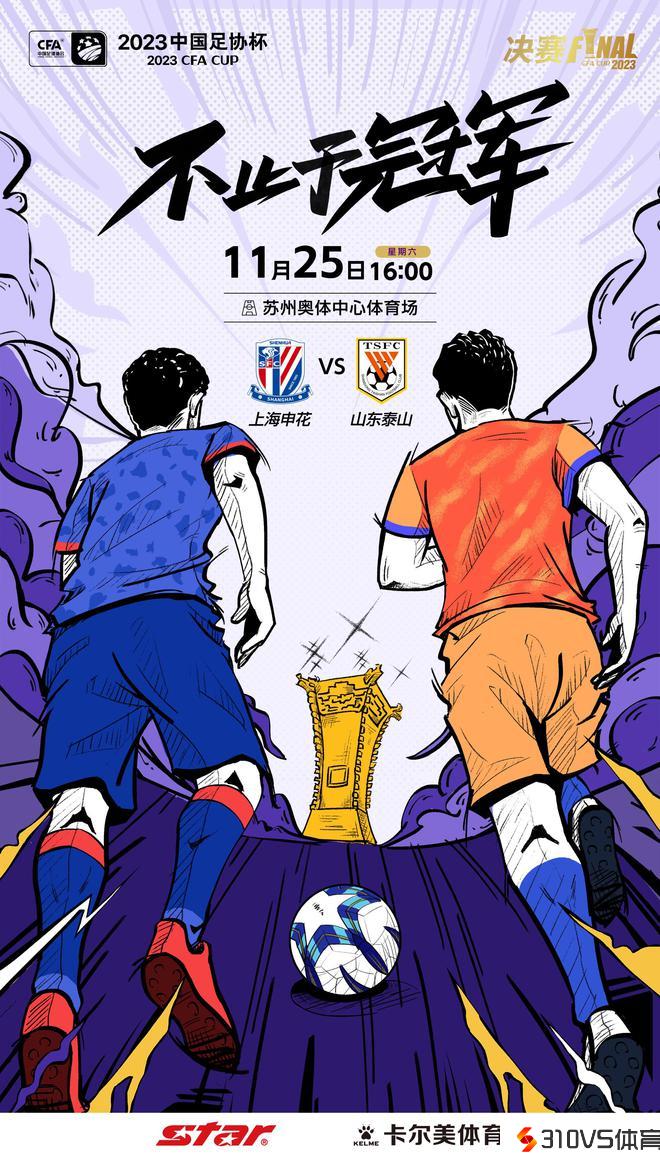 不止于冠军!足协杯官方发布决赛海报,申花泰山共同奔向光荣奖杯