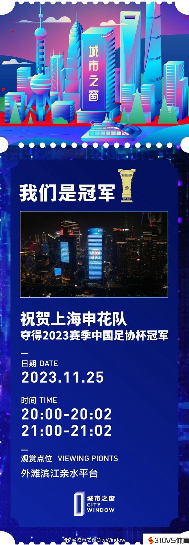 祝贺申花足协杯夺冠,上海外滩将为申花亮灯