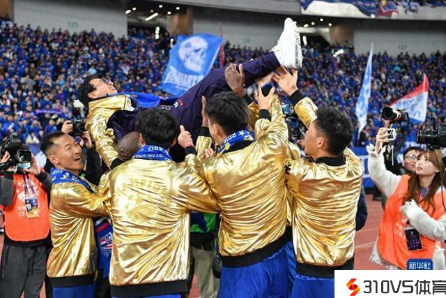 11月25日,上海申花队球员抛起主教练吴金贵庆贺夺冠。