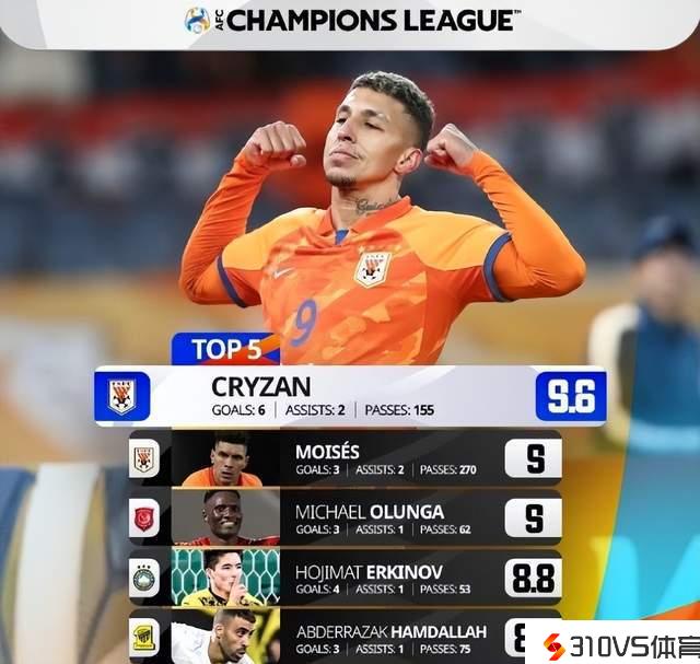 自豪!亚冠球员评分榜前5位出炉:有4人是中超现役或前外援!