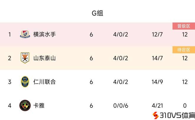 3队12分!亚冠G组积分榜:横滨第1、泰山第2晋级,仁川联、卡雅被淘汰