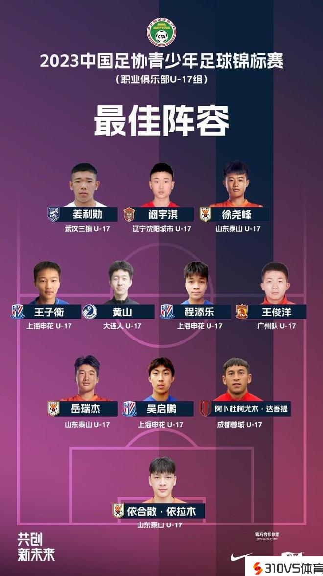 中国足协U17联赛最佳阵容:冠军泰山、亚军申花各有3人中选