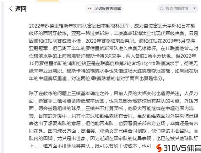 近日,泰山队也又好音讯,31日上午11点, 据《足球报》发文确认,武汉三镇刚刚敲定了新赛季开启备战的时间,球队将在2024年1月8日集中末尾冬训,俱乐部的股改、帅位以及人员活动也在停止之中。同时《足球报》针对外乡球员也表示高准翼、邓涵文是曾经合同到期,他们应该不会留队。而队内国脚韦世豪,由于近期在国度队的优秀表现,也曾经被其他球队盯上,三镇方面不扫除放其离队,既可以浪费工资本钱,也可以变现。