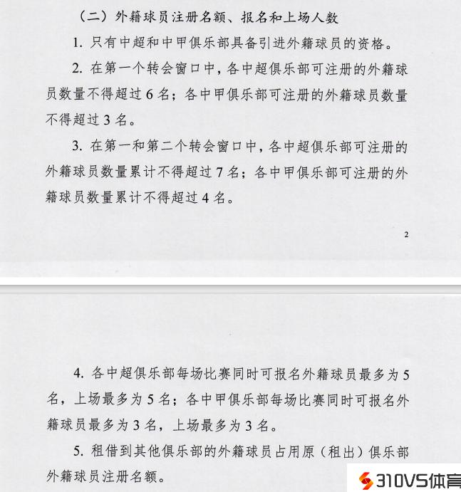 足协官方:新赛季中超外援注册7人,上场5人