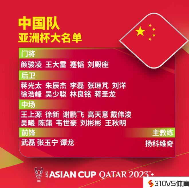 ▷国足发布亚洲杯26人大名单!中国C罗变后卫