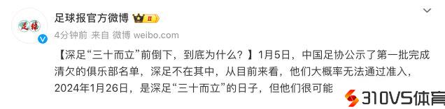 又一中超冠军倒下?曝深圳队或在26日前宣布解散!未能挺过30周年