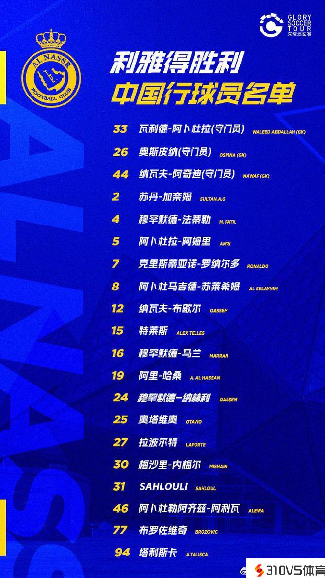 官宣:2024利雅得成功中国行球员名单 C罗确定来中国