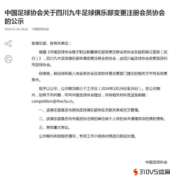 遗憾,四川九牛搬迁至深圳!中国足协公示九牛变卦注册协会