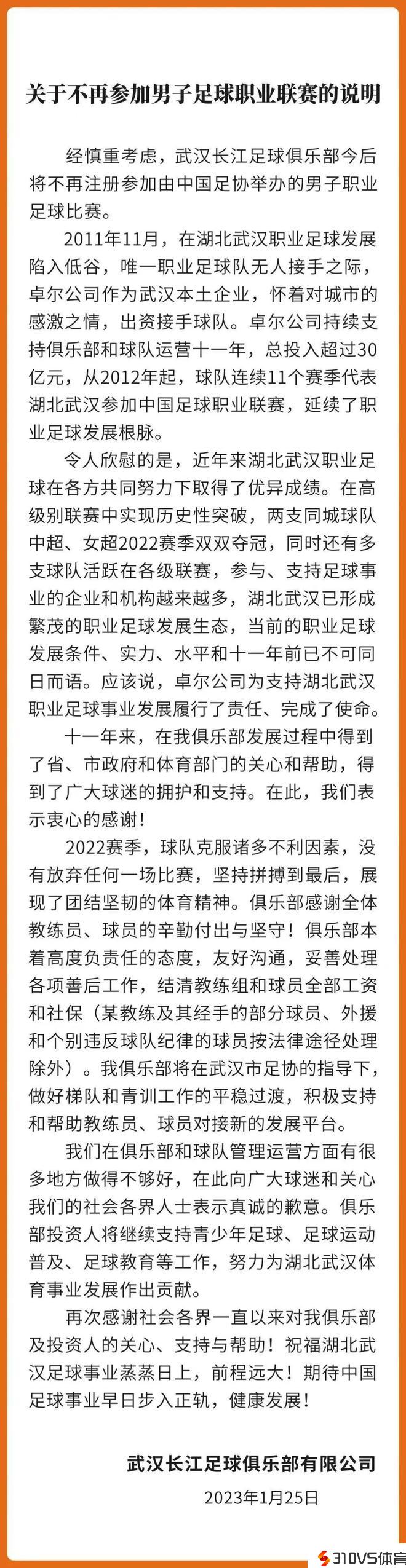 一周年,前中超球队武汉长江队曾经参与职业联赛一年