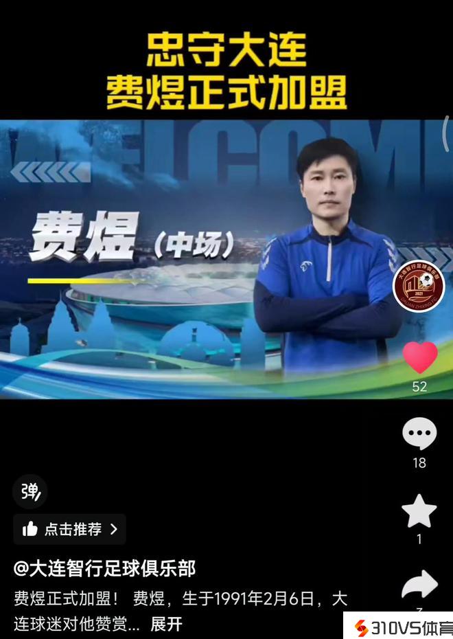 大连智行在官方抖音中写道:“费煜正式加盟!费煜,生于1991年2月6日,大连球迷对他赞赏有加,且深受大家喜欢。身高 187cm、体重82kg、司职中场。2011-2013赛季效能于上海申花联盛、2013赛季效能于波兹南瓦尔塔、2013-2014赛季效能于塞尔唐人、2014-2015赛季效能于深圳宇恒、2016-2019赛季效能于深圳佳兆业、2019-2022赛季效能于南通支云、2022-2023赛季效能于大连人。2024赛季正式加盟我俱乐部,离开就是一家人!未来,俱乐部将继续官宣新加盟球员,敬请关注!”