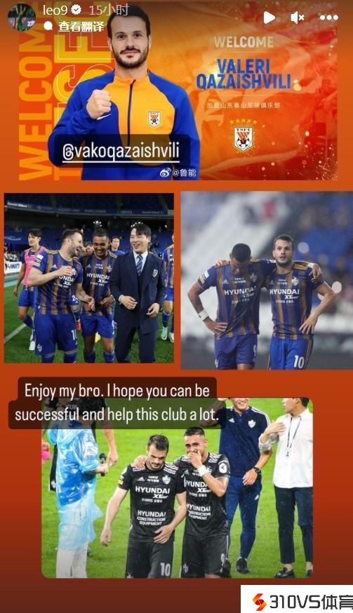 莱昂纳多祝贺卡扎加盟泰山队:愿你取得成功,带来许多贡献