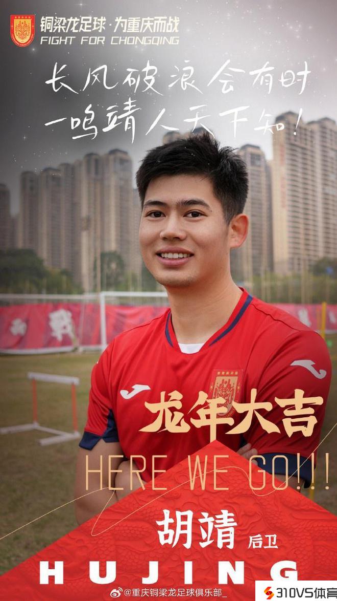 官方:成都蓉城后卫胡靖加盟中甲升班马重庆铜梁龙