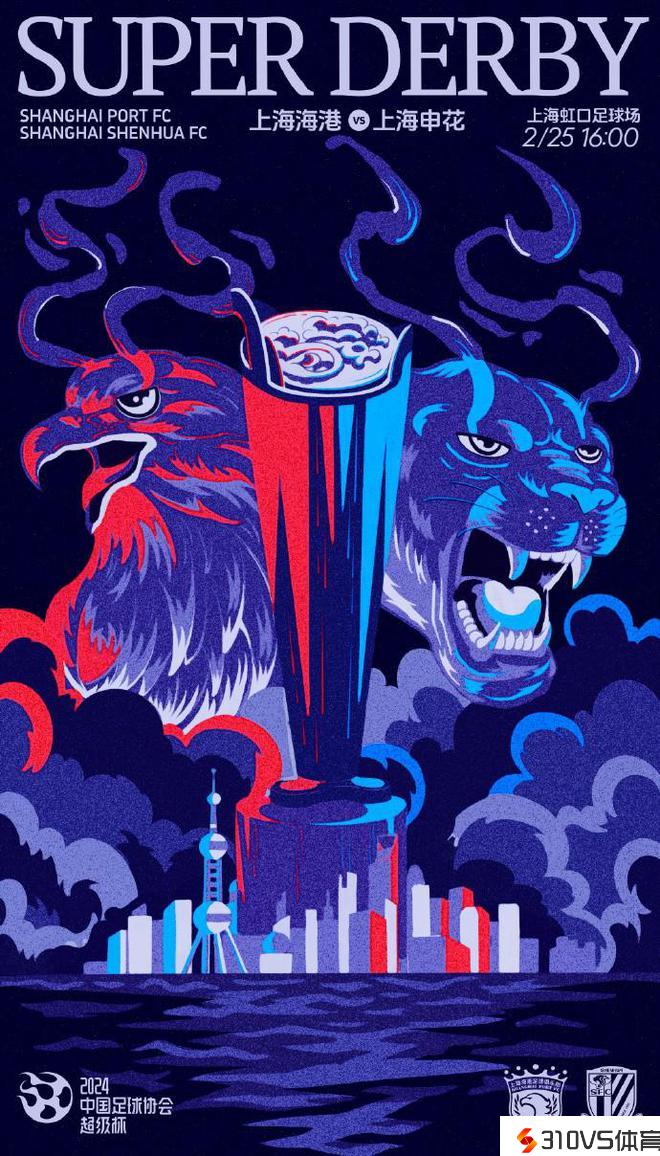 超级杯上海德比官方海报:鹰豹相争,谁将夺得2024第一冠?