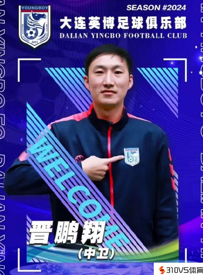 大连英博官方公告中写道:“晋鹏翔正式加盟!晋鹏翔,1990年1月25日出生,身高187cm,体重77kg,司职中卫。出自于绿城青训,2010年升入浙江绿城一线队,2012年终回归家乡加盟大连阿尔滨。2015赛季加盟北京国安乐视,时期曾租借加盟天津权健、大连一方、广州富力。上赛季初转会至淄博齐盛,中期加盟广西平果哈嘹。2024回到大连,正式加盟我俱乐部,第三次为大连球队效能。”