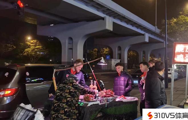 接地气,网传成都队长周定洋和两名外援在路边摊买水果