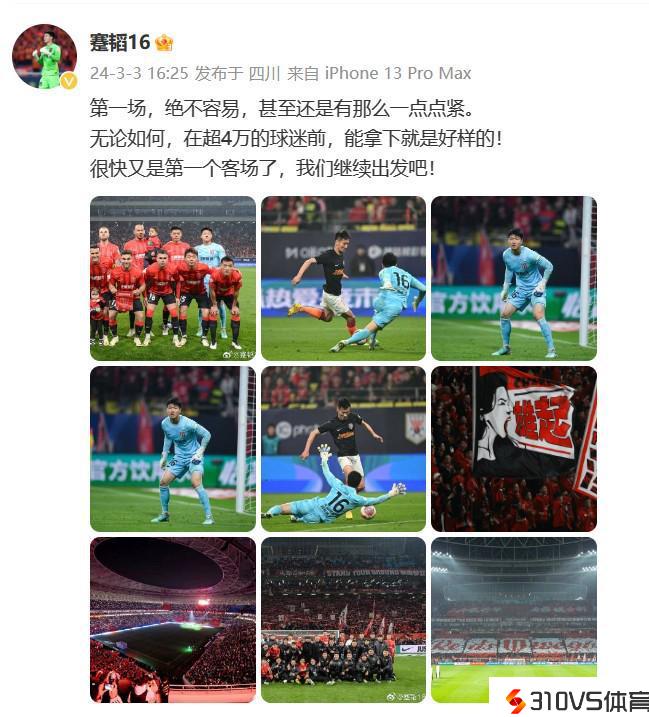 蹇韬写道:“第一场,绝不容易,甚至还是有那么一点点紧。无论如何,在超4万的球迷前,能拿下就是好样的!很快又是第一个客场了,我们继续动身吧!”