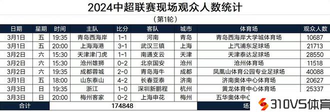 不过,思索到往年3月第一个周末就提早开赛,一些地域气温还比拟低,同时周五任务日还布置了三场竞赛,因此首轮平均观众可以打破2万人,曾经算得上是一个不错的数据了。