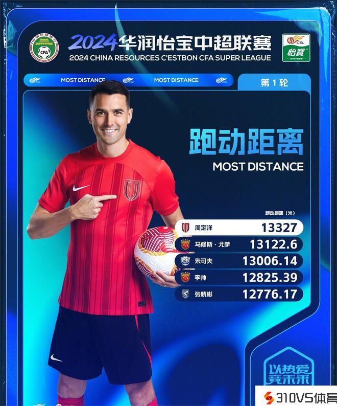 上海海港有2名球员上榜,区分是:尤萨、李帅,跑动距离为:13122.6米、12825.39米,分列第2、第4。他们不知疲倦的跑动,协助上海海港在开幕战中,以3-1击败武汉三镇,取得开门红。