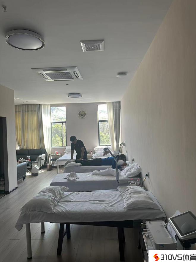 5日出征仪式前,一位新加盟球队的外籍球员正在医疗室做着理疗,还有几名球员在宽阔的健身房停止着复杂的身体恢复训练,而理疗室中也有干蒸房、湿蒸房、冰池和热水池等现代化的设备。