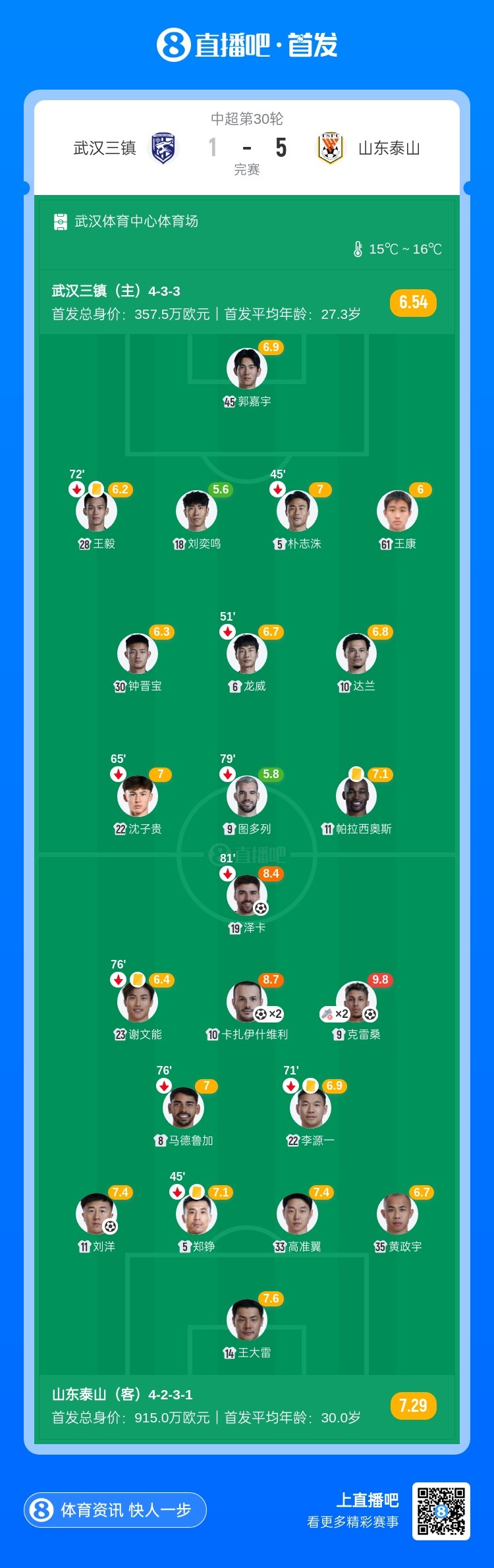 中超收官|山东泰山5-1武汉三镇 卡扎伊什维利双响27球憾失金靴