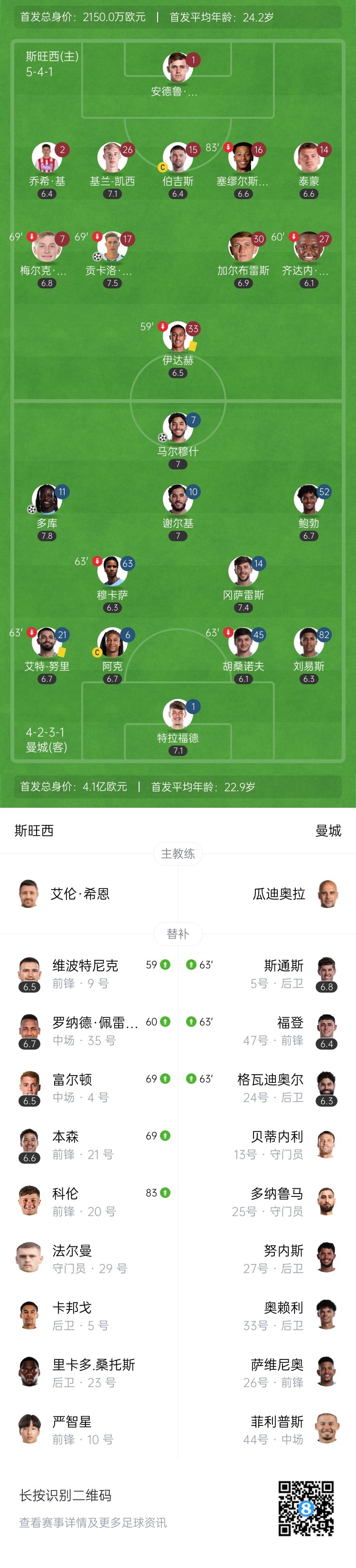 【双方首发以及换人信息】