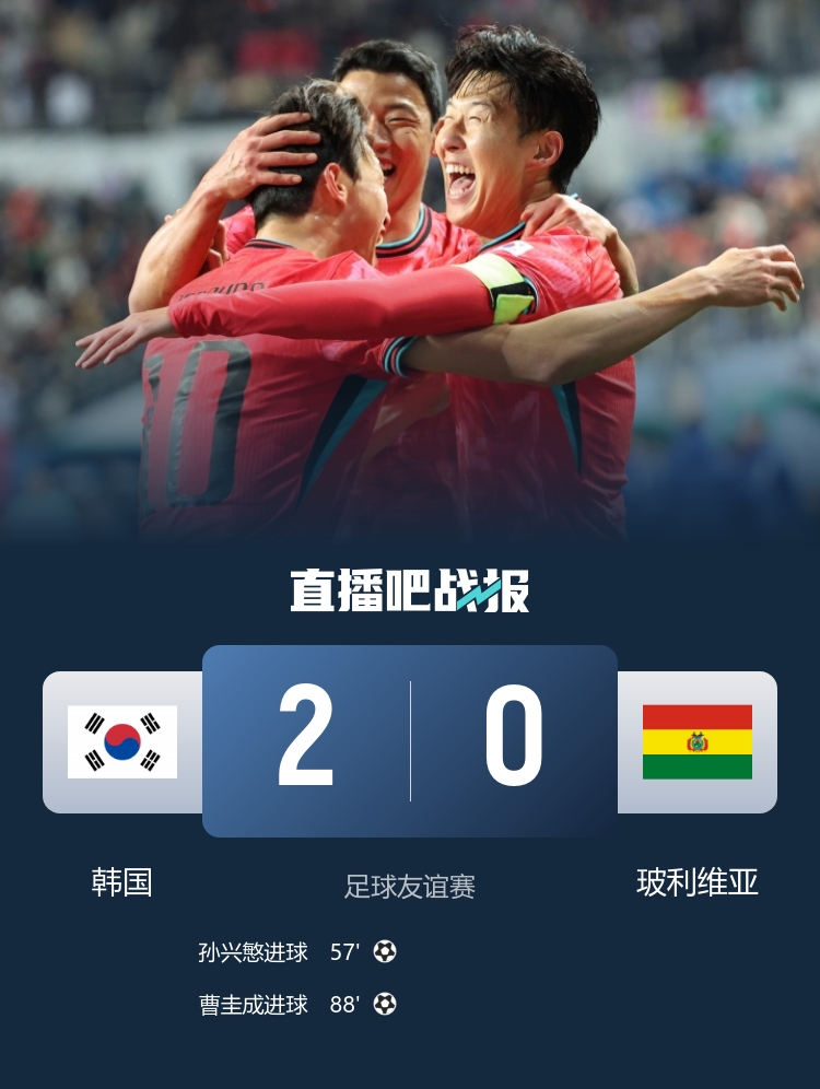 友谊赛连胜!韩国2-0玻利维亚 孙兴慜任意球十分角破门曹圭成建功