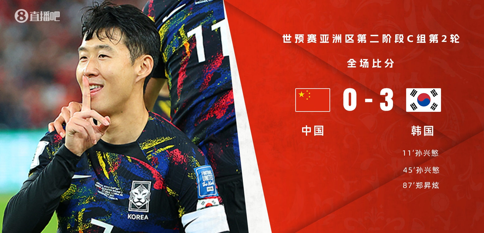 11月21日讯 北京时间11月21日晚20点整,世预赛亚洲区C组第2轮在深圳大运中心体育场展开角逐,中国男足坐镇主场迎战韩国。上半场孙兴慜梅开二度,谭龙失良机,下半场朱辰杰门线解围,孙兴慜助攻郑昇炫破门,裁判多次判罚引争议。最终中国男足主场0-3不敌韩国,C组积分榜方面,国足积3分降至第3,韩国积6分领跑。