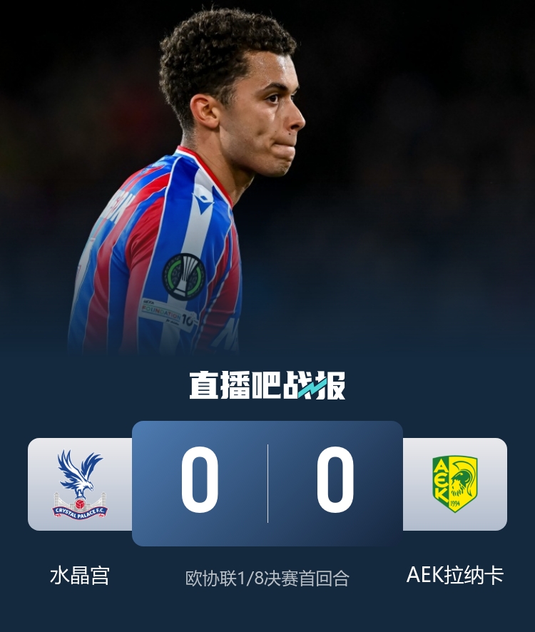 闷平!水晶宫首回合0-0AEK拉纳卡 萨尔兜射造险拉纳卡全场0射正