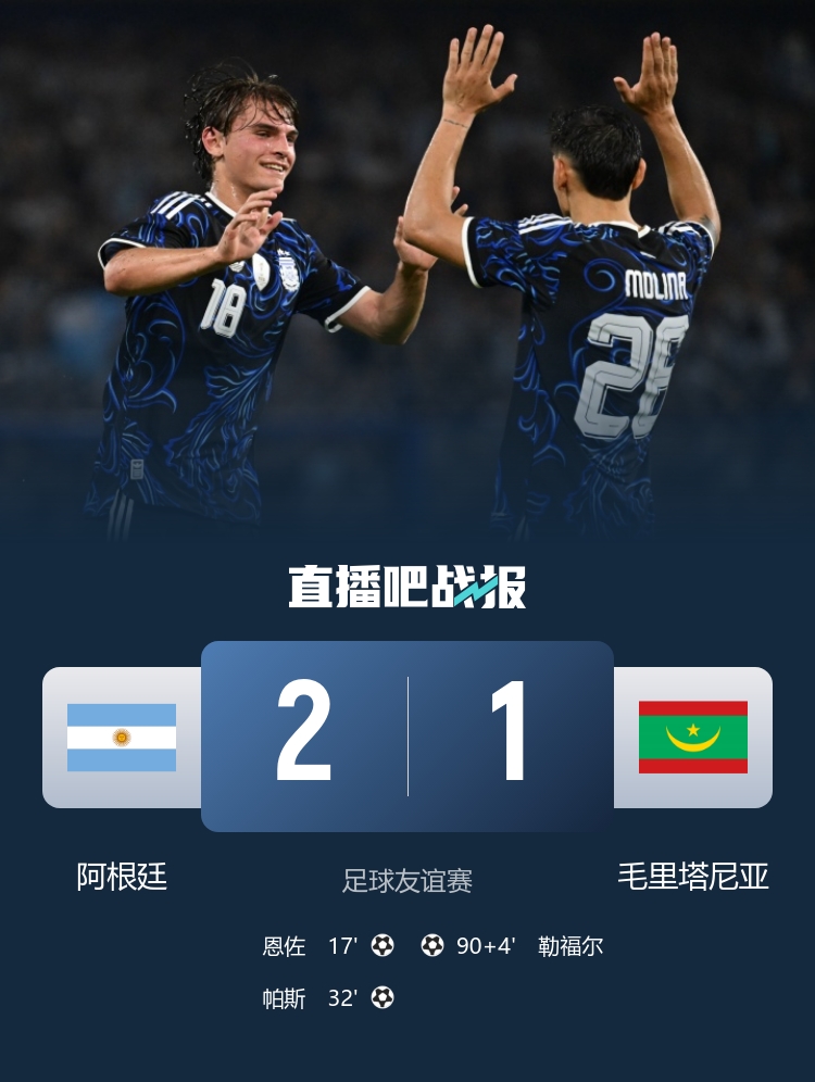 友谊赛-阿根廷2-1毛里塔尼亚 帕斯任意球破门+国家队首球恩佐建功