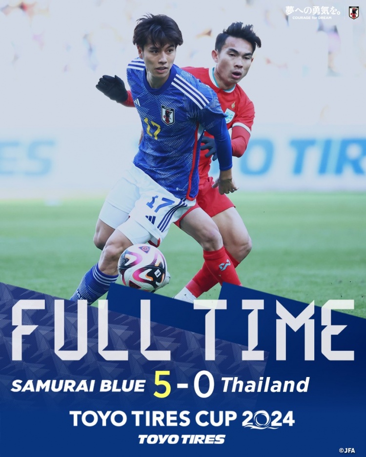 全场比赛结束,日本队5-0大胜泰国队。