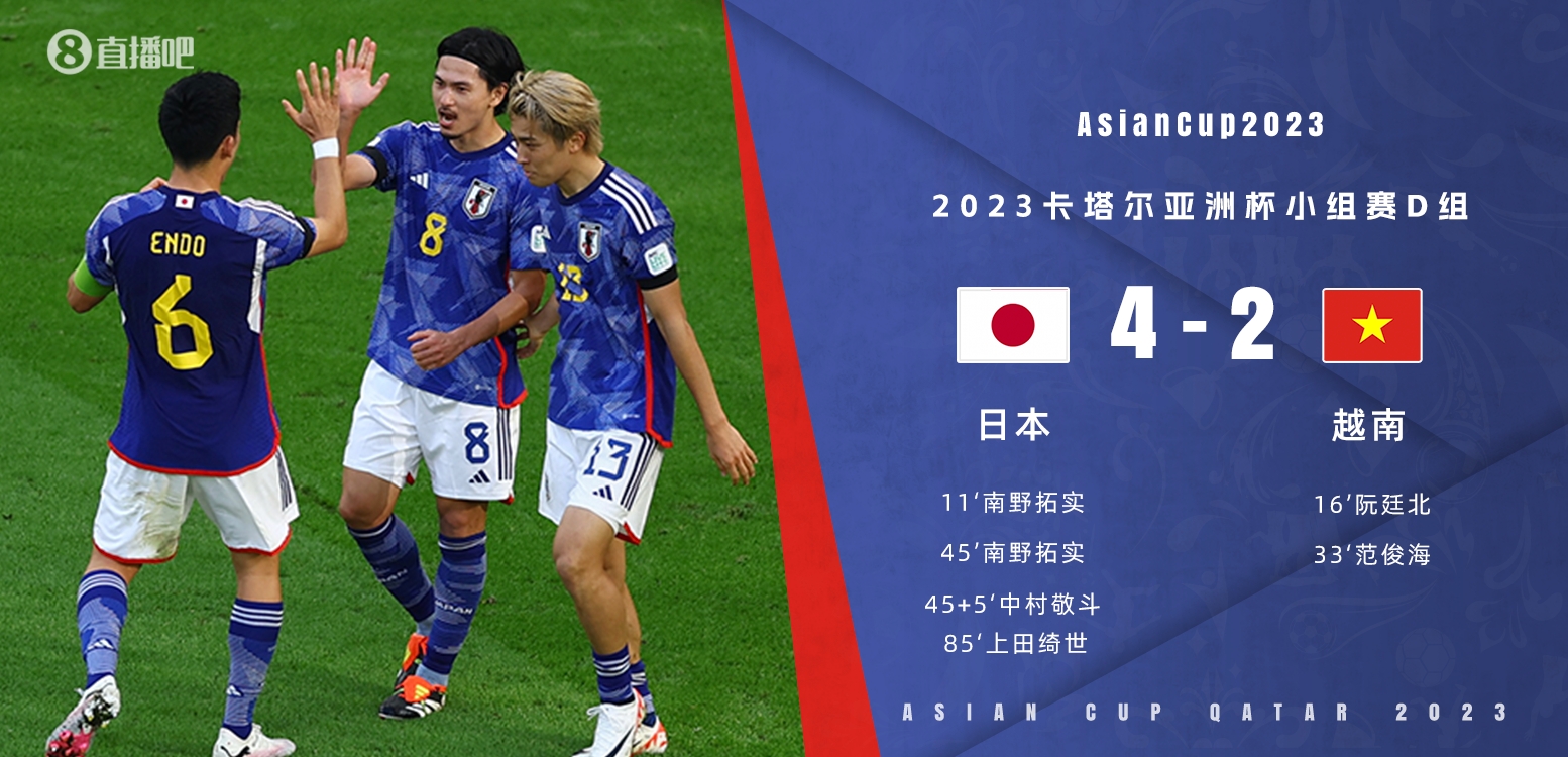 全场比赛结束,日本4-2越南。