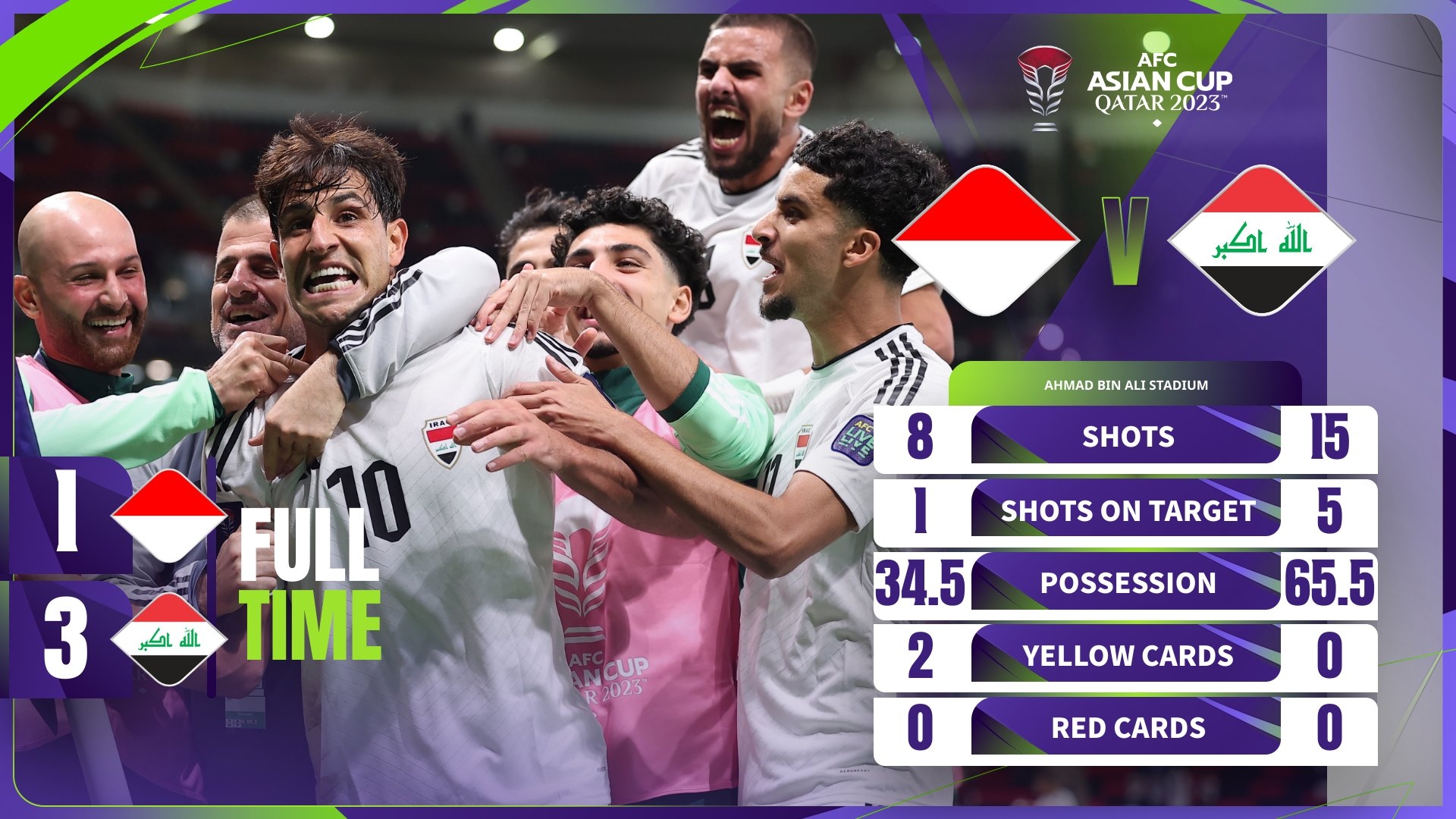 亚洲杯-伊拉克3-1印尼迎开门红排小组第二 埃曼-侯赛因凌空斩
