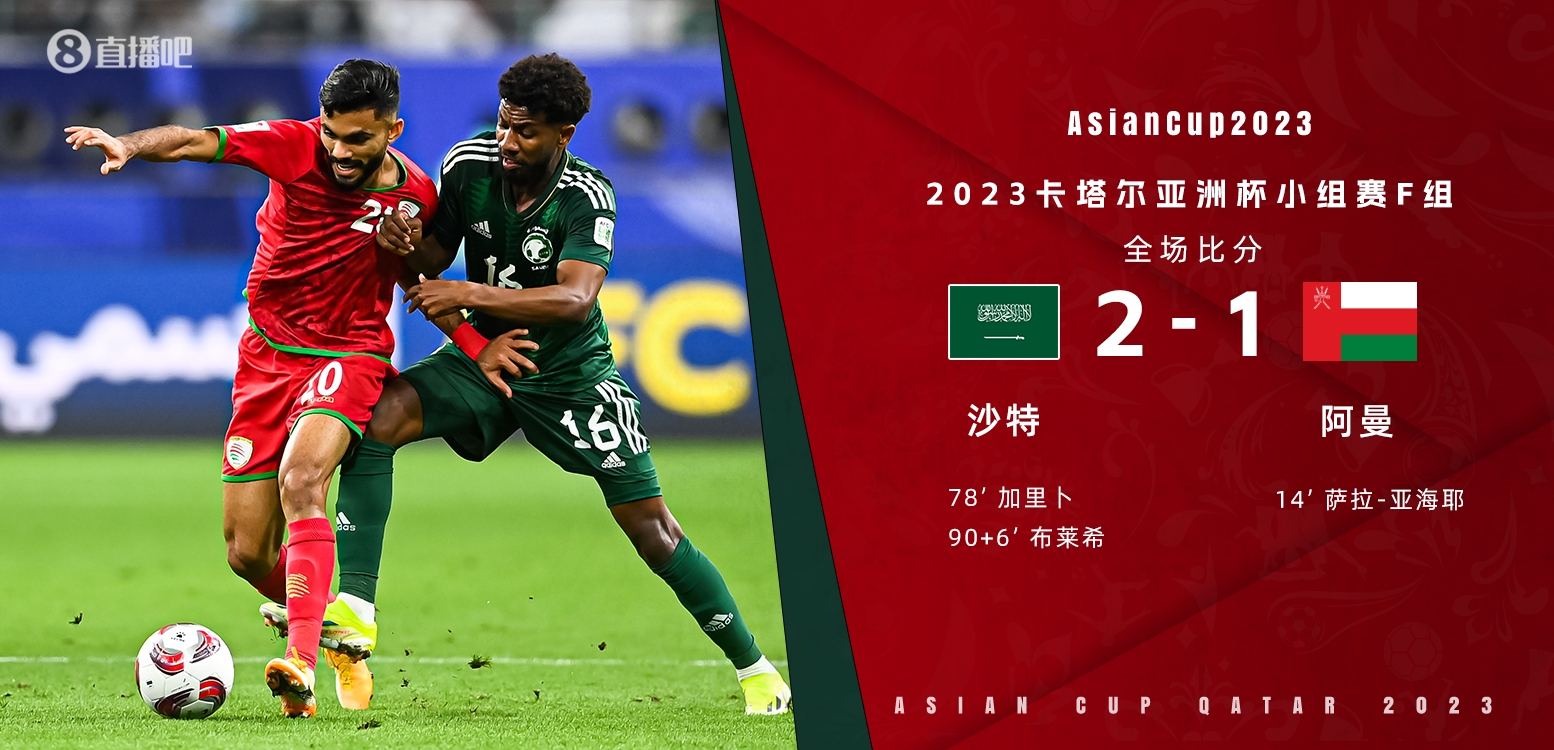 亚洲杯-沙特2-1逆转阿曼居F组第二 加里卜一条龙沙特补时绝杀
