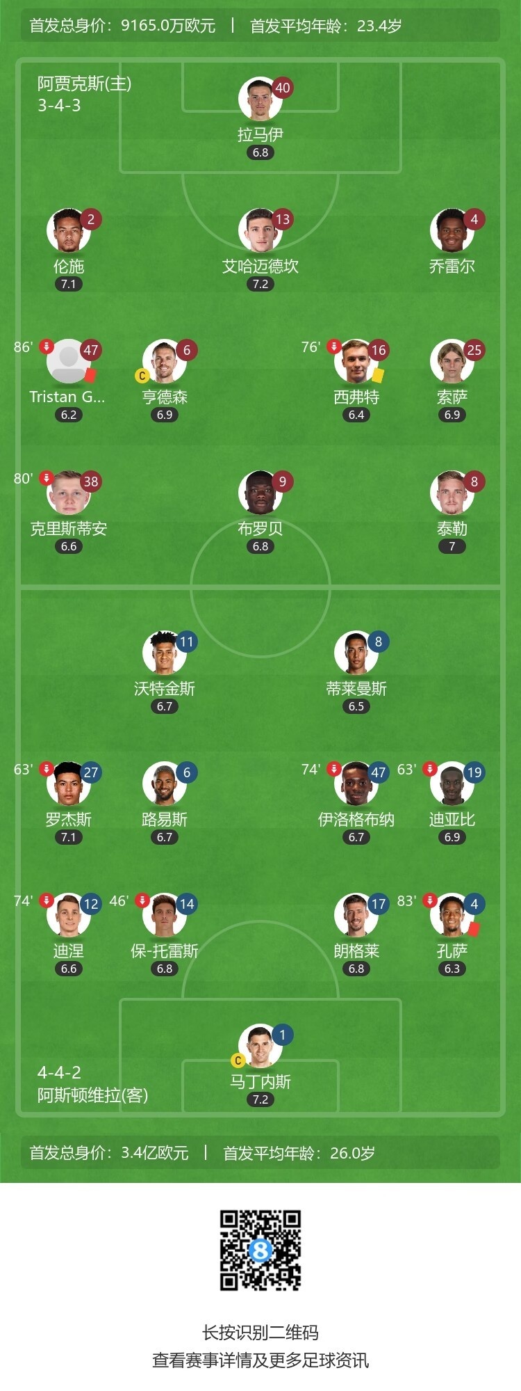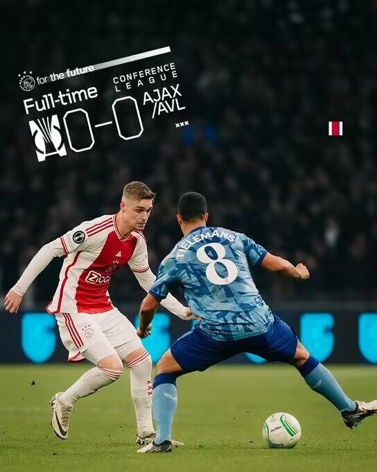 欧协联-十人阿贾克斯0-0十人维拉 孔萨&古耶尔比赛尾声相继染红