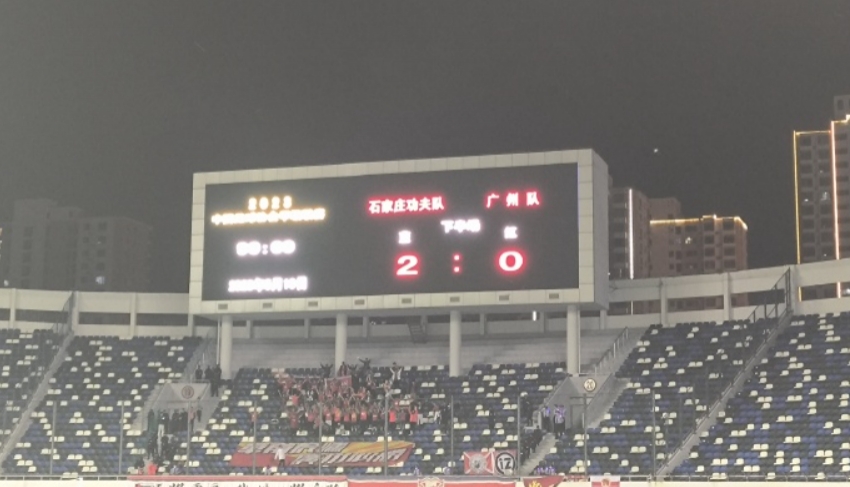全场比赛结束,石家庄功夫2-0广州队。